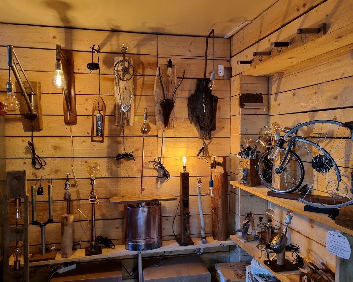 Laisser voguer votre imaginaire et décoller avec nous à travers ces création réalisé en matériaux recyclés provenant de diverses matières : bois – métaux – pièces de vélos et autres…