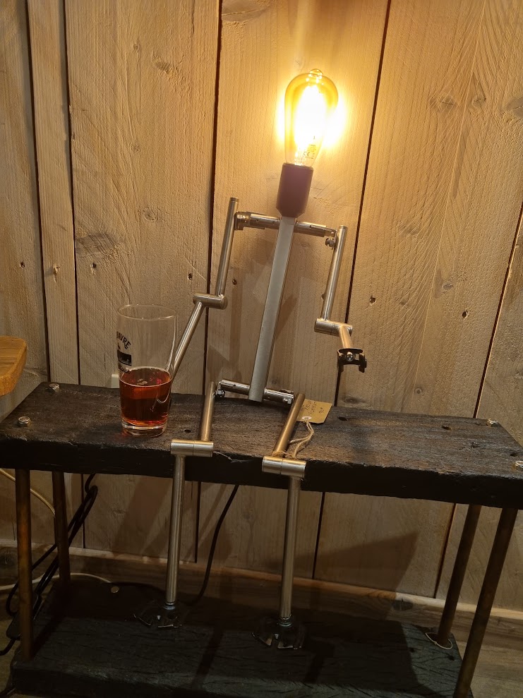 Poncé, taillé, brûlé et ciré il est maintenant à nouveau en fonction en lampe décorative.