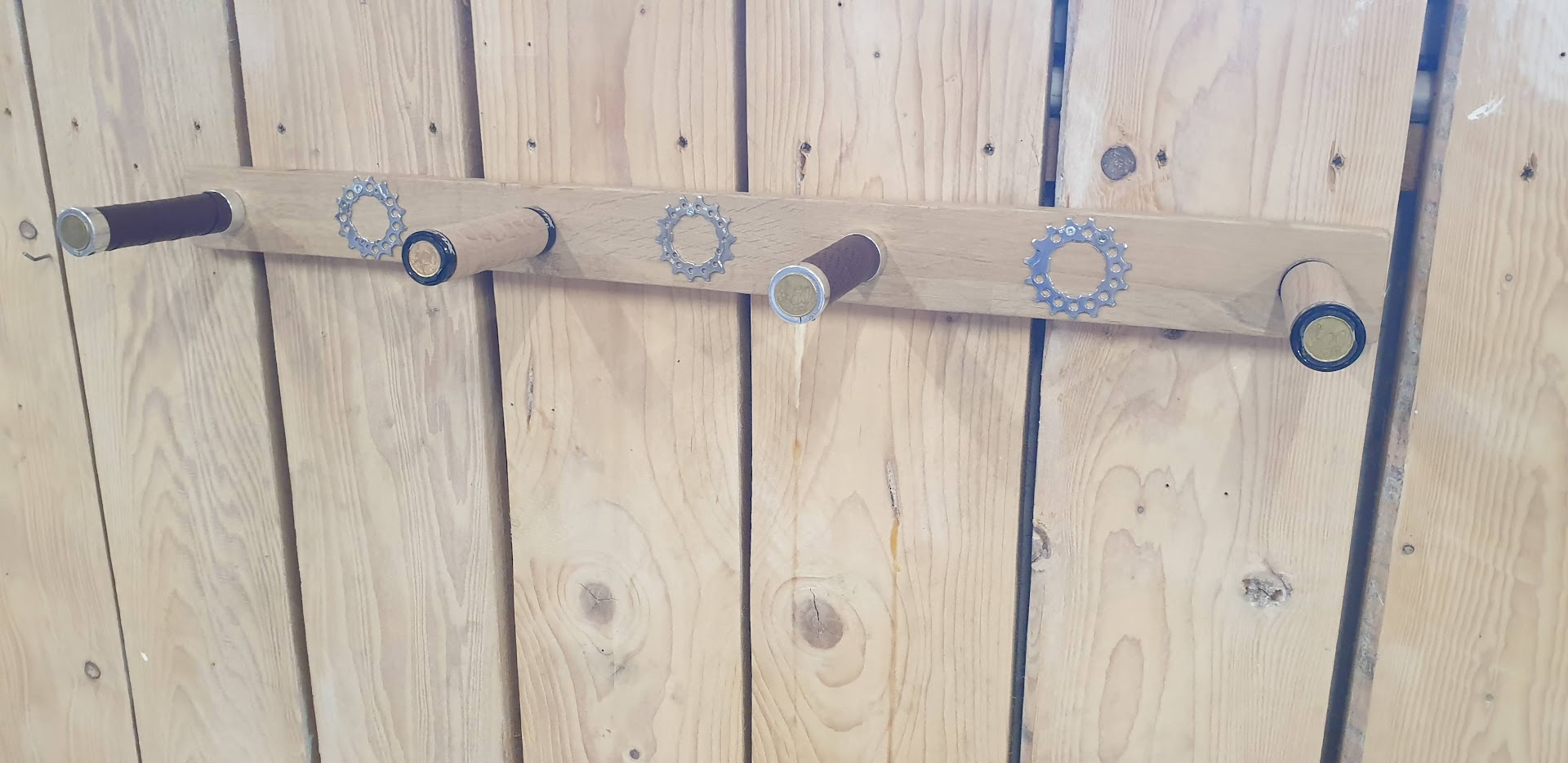 Voilà comment quatre vieilles poignées de vtt, agrémentée de pignons de vélos donne vie à ce porte manteau.
