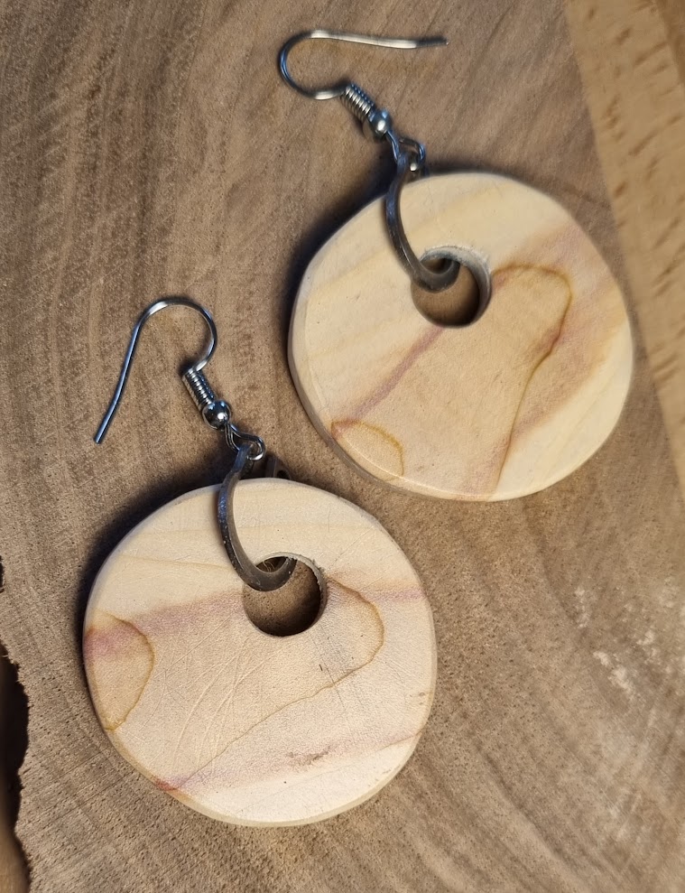 Deux ronds de Cyprès aspect finition brut pour cette paire de boucles d'oreilles.