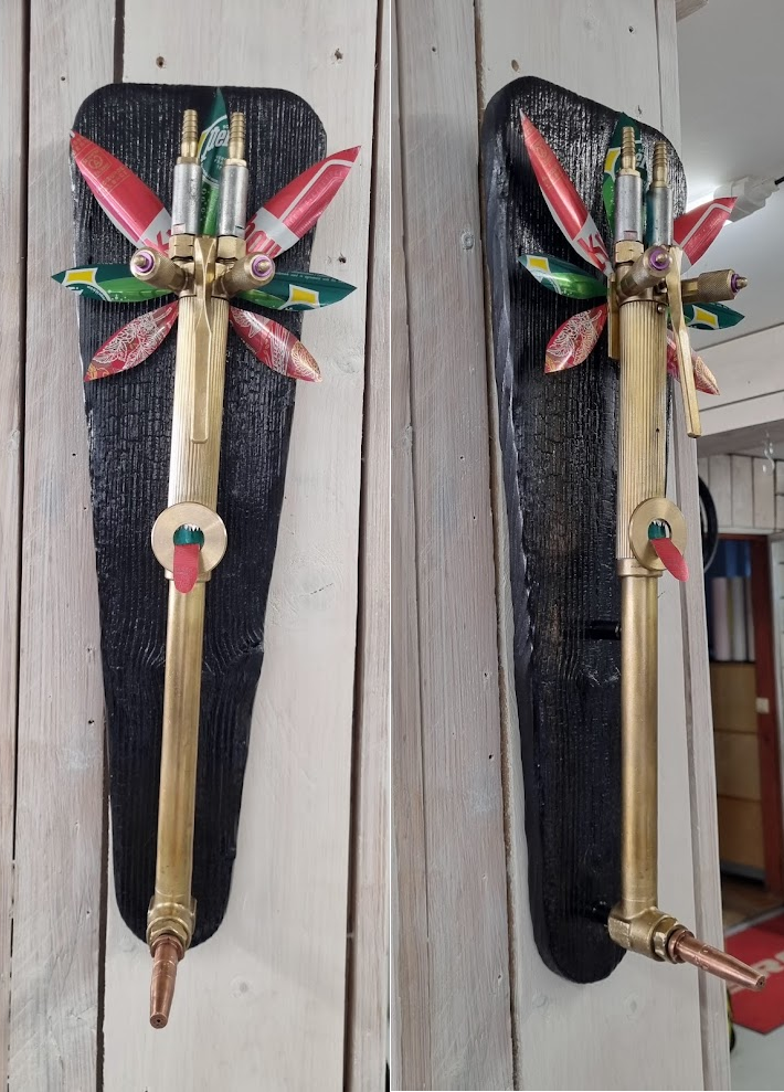 Quand un vieux chalumeau oxycoupeur rencontre une chute de planche et des cannettes en aluminium.