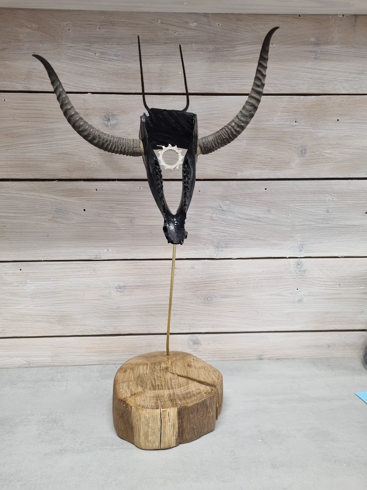 Machoire inférieure de chevreuil, morceau de thuya